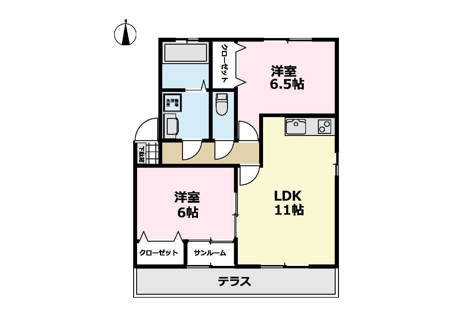 | 設備 | バストイレ別、エアコン、陽当り良好、シューズボックス、南向き、温水洗浄便座、洗面所独立、洗面化粧台、駐輪場、礼金不要、IHクッキングヒーター、グリル付、全居室洋室、オール電化、クッションフロア、テラス、トランクルーム、浴室に窓、クロゼット2ヶ所、平坦地、サンルーム、敷地内ごみ置き場、全居室6畳以上、通風良好 |